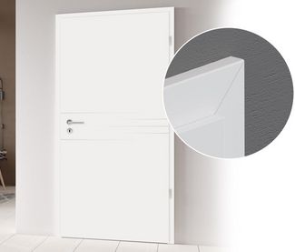 Absoluter Hingucker - Weißlack-Spritzlackzarge mit V-Fuge in Kombination mit dem Stiltürmodell Triago.